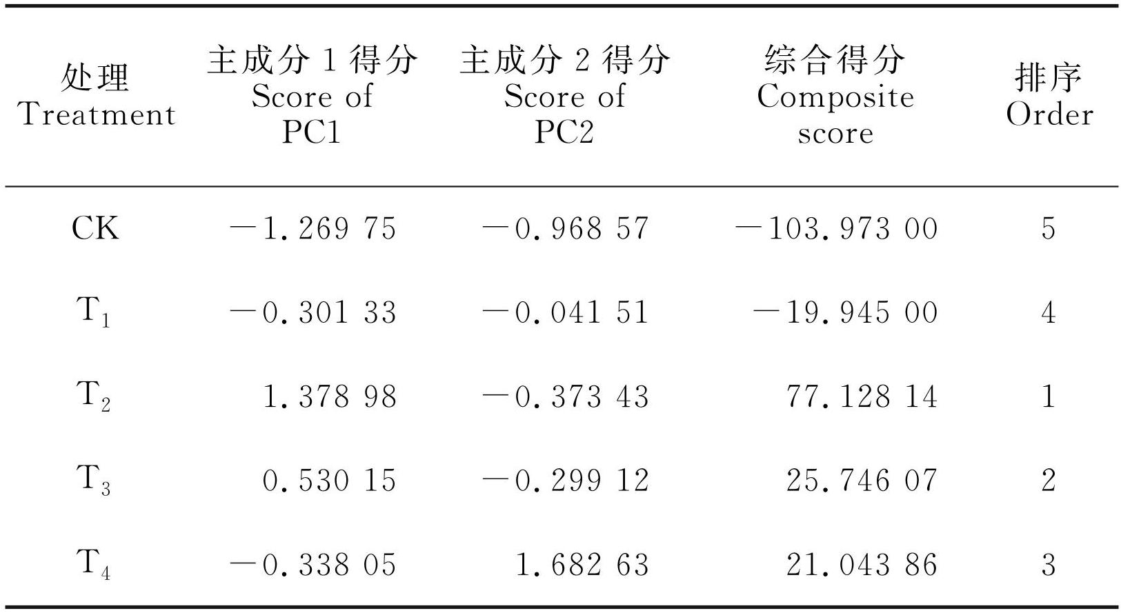 表2各主成分得分及综合得分