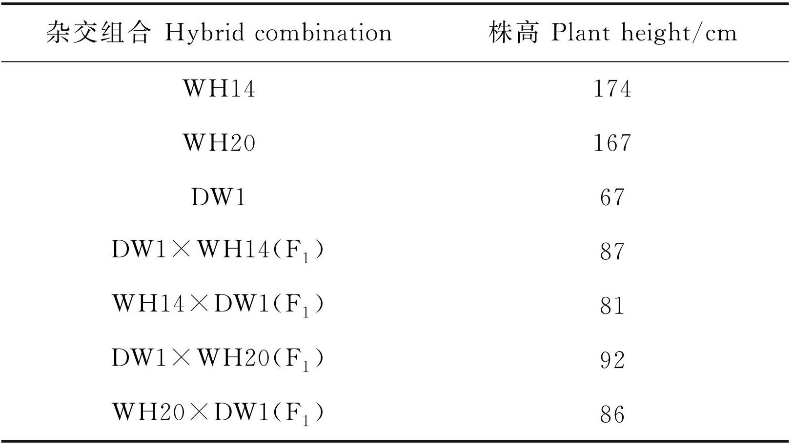 表1油菜高矮秆亲本及F1代株高