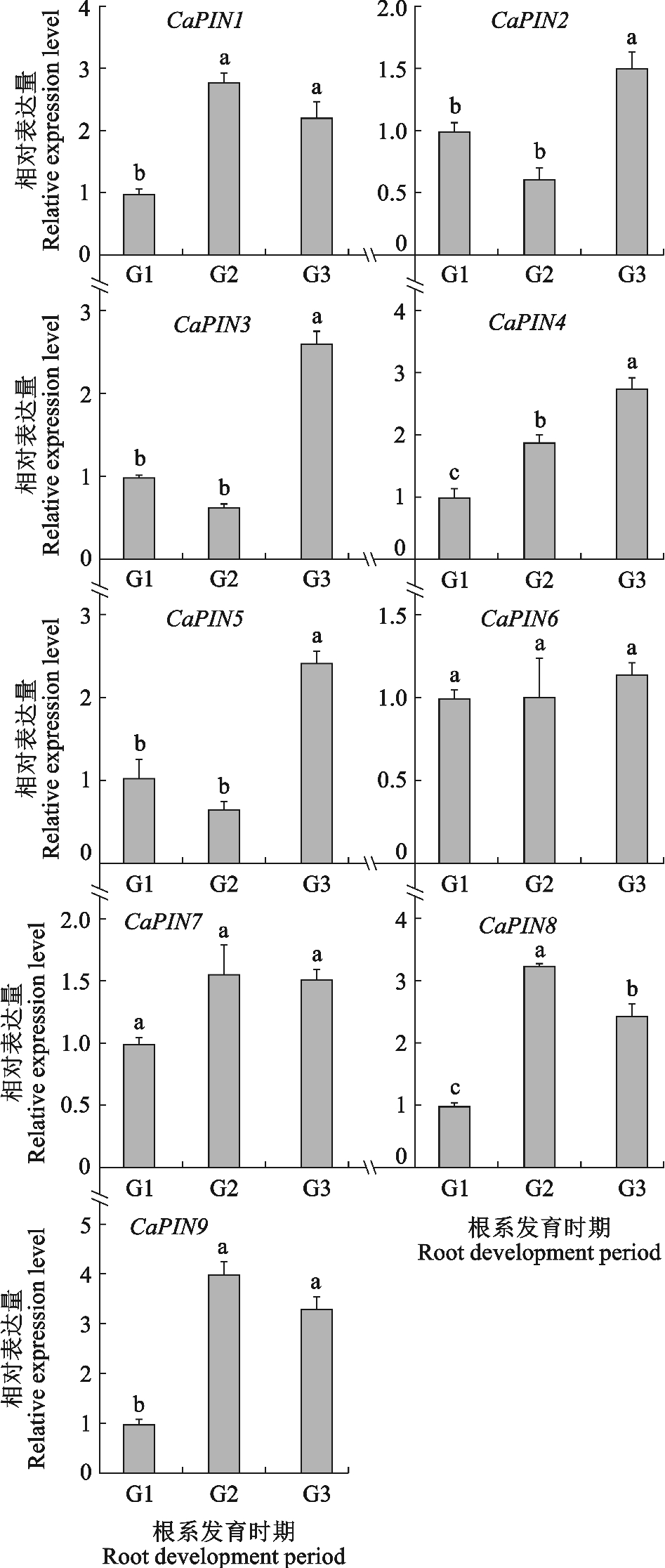 Fig.10Expression analysis of the pepper CaPIN genes in root development